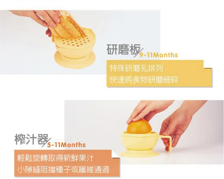 ・Grinding plate (suitable for 9-11 months): Grinding holes allow quick and fine grinding.